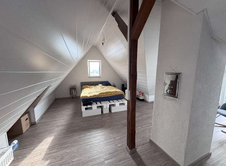Das Dachgeschoss ist gedämmt und ausgebaut.
