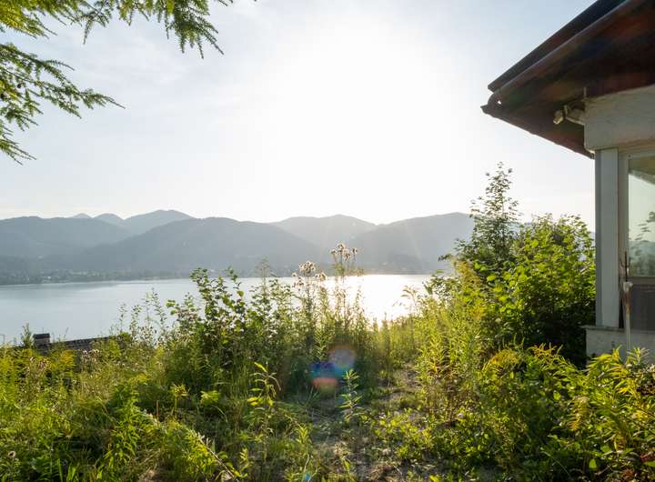 In exponierter Hanglage oberhalb des Tegernsees liegt dieses ca. 800 m² große Grundstück, das in Lage, Aussicht und Ausrichtung nicht zu übertreffen ist. Der Blick schweift über den See, die Berge, über Boote, Himmel und Horizont. Eine vollkommene Südwestlage, in unmittelbarer Nähe zur Natur und doch nah am Geschehen. Der zum See orientierte Garten folgt der natürlichen Hanglage und bildet eine harmonische Verbindung mit der Landschaft. Ein erhabener Platz von seltener Qualität.