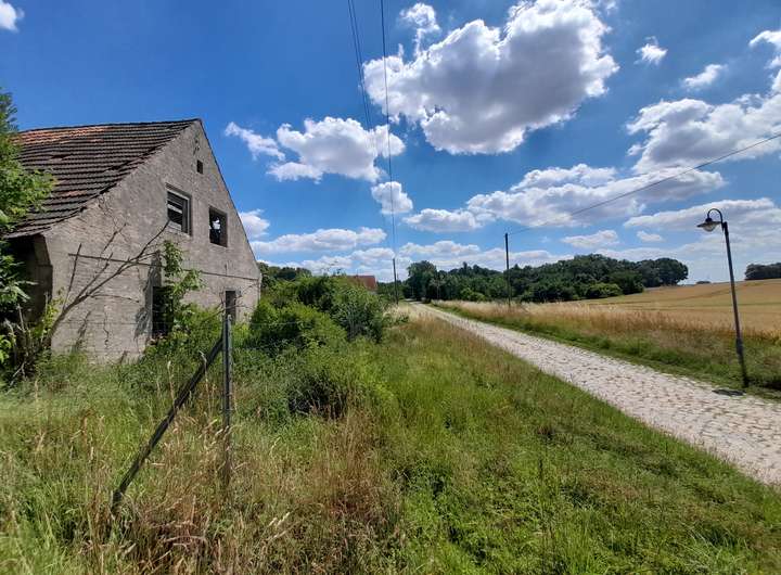 Auf dem Bauland steht eine Ruine (baufälliges Bauernhaus).
