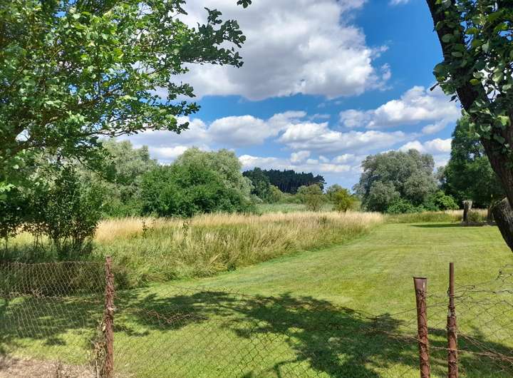Tierhaltung direkt am Haus möglich: Koppeln und Unland mit direktem Zugang zu einem Gewässer.