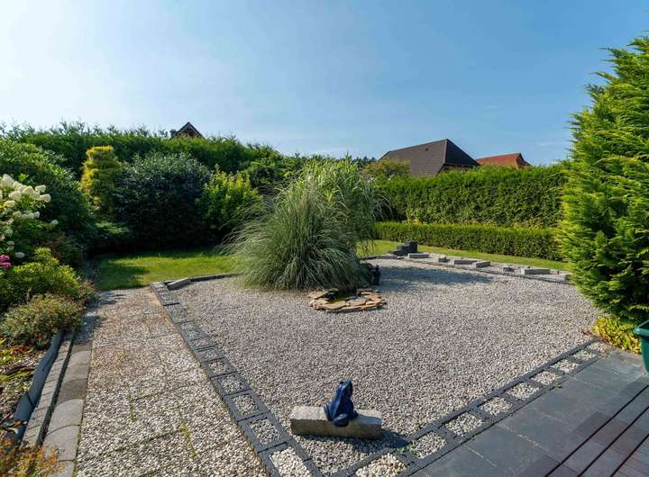 -Pflegeleicht und hochwertig angelegter Garten mit kleinem Teich