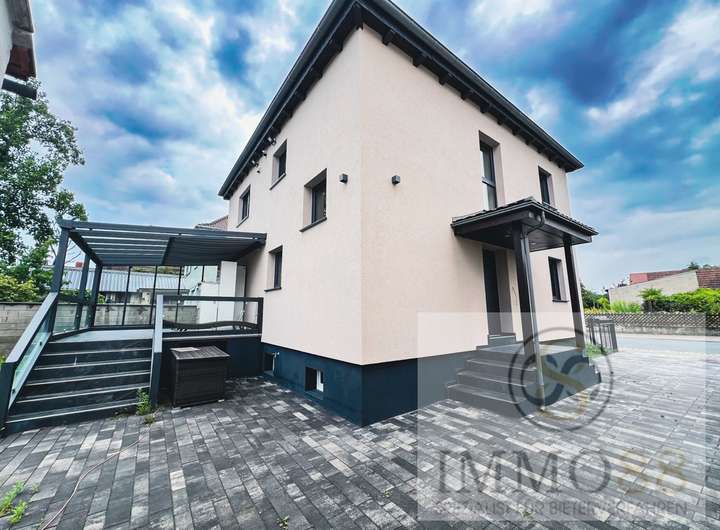 Willkommen in diesem wunderschönen, modernen Einfamilienhaus, welches 1953 erbaut und von 2016 bis 2022 umfangreich saniert und modernisiert wurde. Mit einer Wohnfläche von ca. 159 m² und einem Grundstück von etwa 465 m² bietet diese Immobilie viel Platz für individuelle Gestaltungsmöglichkeiten. Das Haus bietet Ihnen insgesamt vier Zimmer, davon zwei Schlafzimmer und zwei Badezimmer, ein Dachstudio, welches noch fertig ausgebaut werden kann, sowie eine Terrasse eine Garage und drei Außenparkplätze. Das Erdgeschoss präsentiert sich mit einem großen Wohn-Essbereich. Die hochwertige Einbauküche lässt keine Wünsche offen. Von der Küche haben Sie einen direkten Ausgang zur Terrasse und in den Garten. Das moderne Bad auf dieser Etage ist mit einer bodentiefen, großen Regendusche ausgestattet. Die Elektrik im gesamten Haus wurde erneuert und mit einer Smart-Home Steuerung versehen. Mit dieser können Sie Ihr Licht, die Rollläden, die Haustür und die Fenster ganz einfach per App steuern. Im Obergeschoss ist das Schlafzimmer sowie das Kinderzimmer mit einer Klimaanlage ausgestattet. Für Ihre Kleider steht Ihnen ein extra Ankleidezimmer zur Verfügung. Ein besonderes Highlight ist das exklusive Badezimmer. Dieses besticht durch eine bodentiefe Dusche, eine moderne Badewanne, zwei Waschbecken, sowie einem Spiegel mit integriertem Fernseher. Das Dachstudio mit ca. 35 m² können Sie nach Ihren Wünschen gestalten. Die Anschlüsse für Bad und Küche sind vorbereitet. Für die finale Fertigstellung sind alle Materialien bereits vorhanden. Das Haus ist komplett unterkellert und bietet viel Staufläche. Eine Garage sowie ein Gartenschuppen runden dieses äußerst interessante Angebot ab.