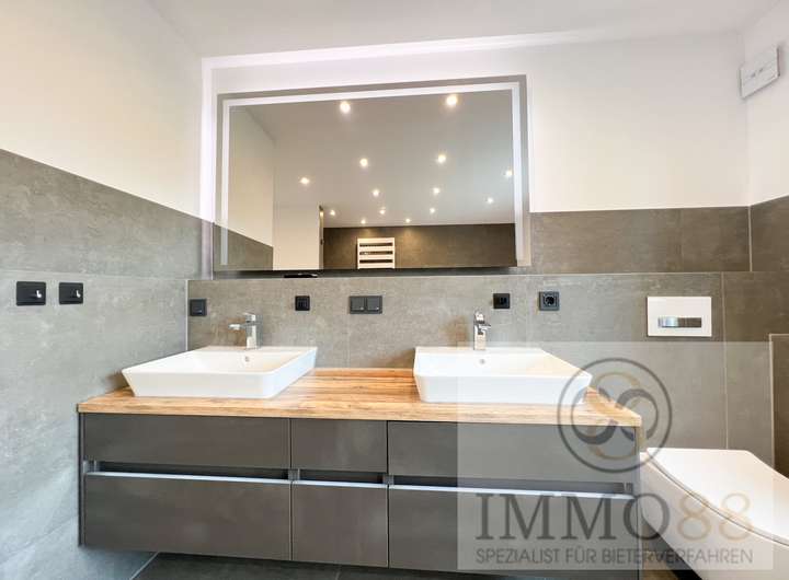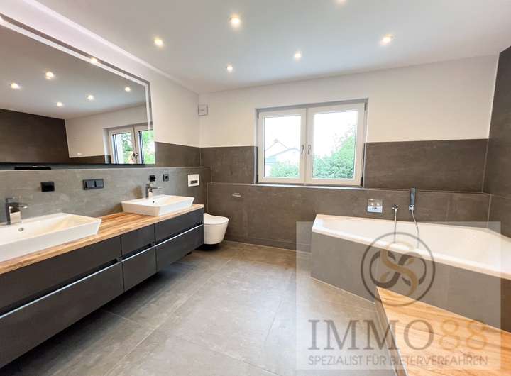 Die kompletten Sanierungsarbeiten wurden zwischen 2016 und 2020 getätigt. BESONDERE AUSSTATTUNGSMERKMALE: - Smart-Home-System mit Appsteuerung (Licht, Rollladen, Tür-und Fensterkontakte) - jeder Schalter im Haus kann frei programmiert werden - Kamera Überwachung - moderne Haustür dreifach gesichert mit Fingerprint - neue Fenster 3-fach Verglasung - Fliegengitter an allen Fenstern - komplett neue Elektrik - neue Wasserleitungen - alle Abwasserrohre erneuert - Heizungsrohre und Heizkörper erneuert - Haus wurde neu gestrichen - Außenfassade gedämmt - Kelleraußenwand gedämmt und abgedichtet - neue, moderne Bäder - neue Innentüren - elektrische Rollläden - Böden Fliesen und Design Vinylboden - zwei Einfahrten neu geflastert - 3 Außenstellplätze - eine Garage - intakter Brunnen mit angeschlossenem Wasserwerk für die automatische Bewässerung des Gartens ERDGESCHOSS: - Wohnzimmer und Esszimmer mit großformatigen Fliesen - moderner Einbauküche mit Markengeräten von Küchenplaner BJ 2020 - Küche mit Ausgang zur Terrasse überdacht - neue elektrische Markise - Terrasse mit Zugang zum Garten - modernes Tageslichtbad mit bodentiefer Dusche BJ 2020 OBERGESCHOSS: - Schlafzimmer mit Klimaanlage - Kinderzimmer mit Klimaanlage - Ankleidezimmer - Böden: großformatige Fliesen und Desgin-Vinylböden - elektrische Rollläden - großes Luxusbad mit bodentiefer Dusche, Badewanne, Doppelwaschbecken, Spiegel mit integriertem Fernseher DACHGESCHOSS: - das Dach wurde 1997 erneuert - Klimaanlage - Dachgeschoss/ Dachstudio ist noch nicht fertig ausgebaut, alle Anschlüsse für Bad und Kochische sind vorbereitet - alle Materialien zur finalen Fertigstellung sind bereits im Haus KELLER: - Kellerraum - Heizungskeller Gaszentralheizung BJ 2014 - Warmwasserboiler von BJ 2024 - Kellerraum - Kellerraum mit Anschlüsse für zwei Waschmaschinen AUßENBEREICH, GARTEN: - Garten - Gartenschuppen - Garage - Anschlusshäuschen mit Leitungen für Pool vorgesehen - neue Mauer - neue Toreinfahrt