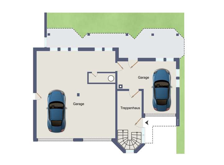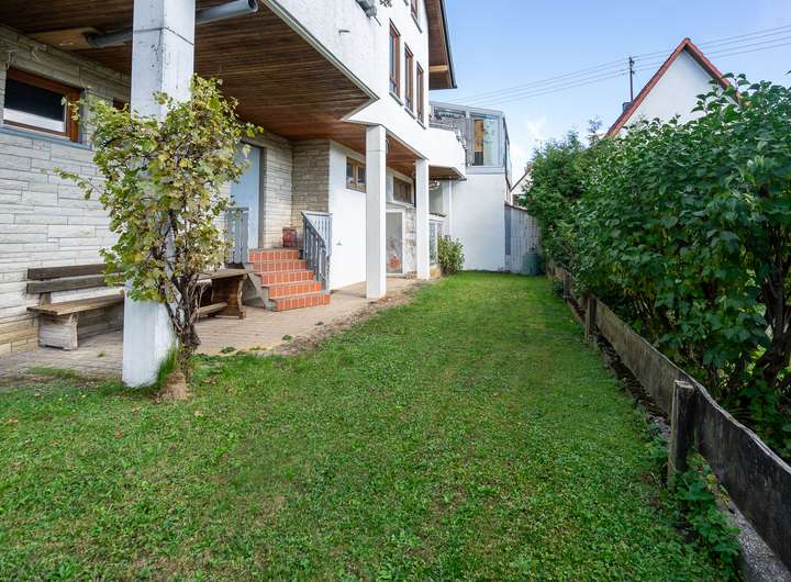 Der kleine Garten lädt zum Entspannen im Freien ein und bietet Platz für individuelle Gestaltung – ob für Blumenbeete, eine Sitzecke oder als Spielbereich für Kinder. Dank der drei Garagen im Erdgeschoss stehen ausreichend Stellflächen für Fahrzeuge oder Hobbyräume zur Verfügung.