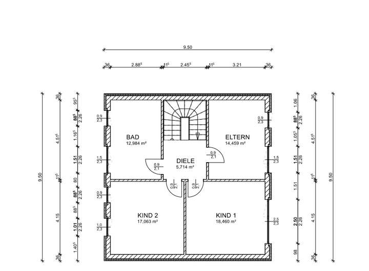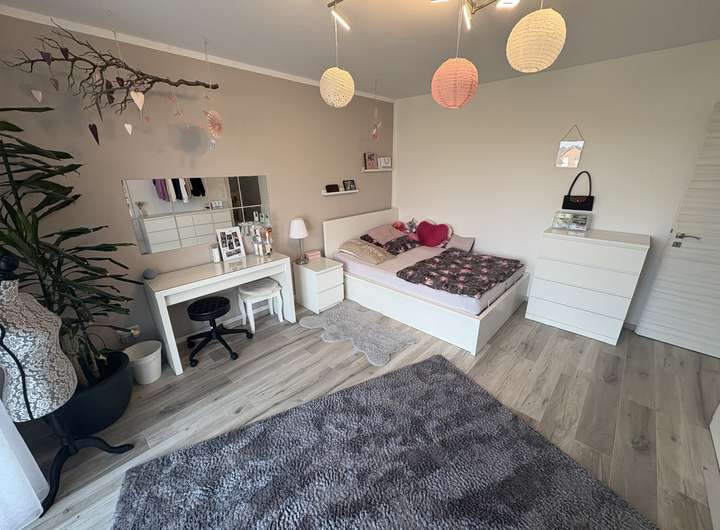 Obergeschoss: Im Obergeschoss erwarten Sie drei geräumige Schlafzimmer mit Flächen zwischen ca. 15 m² und 18,5 m². Alle Zimmer sind mit bodentiefen