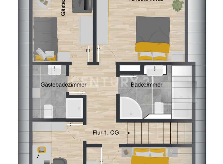 Wohnraum mit Essbereich EG: ca. 50 qm Küche: ca. 11 qm Vorratsraum: ca. 2,3 qm Diele: ca. 8,8 qm Windfang: ca. 1,9 m Garderobe: ca. 2,4 qm WC EG: ca. 2,1 qm Schleuse zur Garage: ca. 2,7 qm Hauswirtschaftsraum: ca. 9 qm Kinderzimmer I: ca. 10,1 qm Kinderzimmer II: ca. 16,5 qm Flur OG: ca. 5,9 qm Wannenbad + Dusche: ca. 6,3 qm Duschbad: ca. 3,7 qm Schlafzimmer: ca. 15,4 qm Arbeitszimmer: ca. 9,5 qm Balkon Schlafzimmer: ca. 5,5 qm Terrasse: ca. 24 qm Nutzfläche: 135,9 m² Verkehrsfläche: 21,7 m² Außenflächen: 29,5 m² Spitzboden = ausbaufähig Garage + zweiter Stellplatz Ein tolles Raumgefühl erhalten Sie im 360°-Rundgang vom Nachbarhaus.