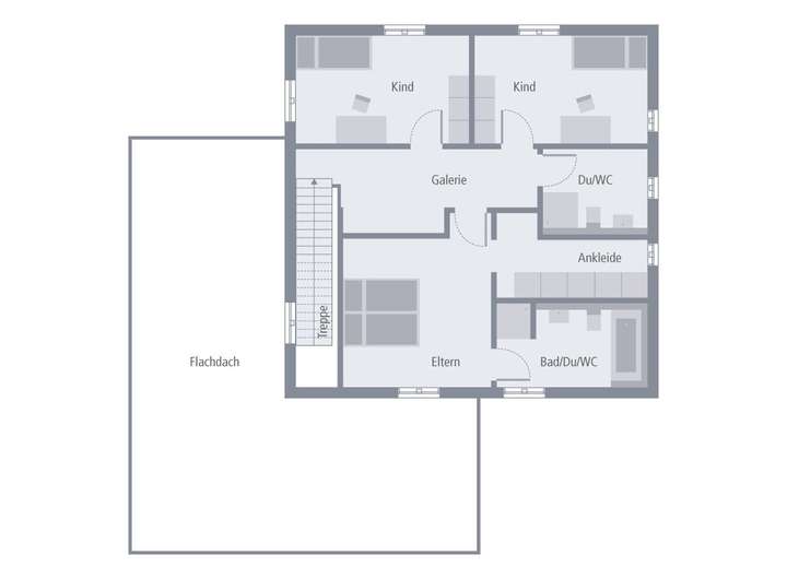 Leben und Arbeiten unter einem Dach - das ist in unserem Staffel 16 auf besondere Weise möglich. Denn hier vereinen sich die Wohlfühlatmosphäre der Wohnräume und die durchdachte Aufteilung des sich im vorderen Bereich des Hauses befindlichen Bürokomplexes zu einer harmonischen Symbiose. Die beiden Büroräume mit Gäste-WC, Abstellraum und sich unmittelbar anschließendem Hauswirtschaftsraum befinden sich im eingeschossigen Anbau, der nicht nur für einen Mehrwert im Hinblick auf die Nutzung sorgt. Denn der farblich abgesetzte Anbau wertet auch die Fassade auf und sorgt für einen echten Hingucker. Insgesamt stehen den künftigen Eigenheimbesitzern mehr als 218 m² Wohnfläche, verteilt auf zwei Ebenen zur Verfügung. Neben den beiden Büros befindet sich Parterre der große und helle Wohn-Ess-Koch-Bereich mit angegliederter Speisekammer und einem weiteren Hauswirtschaftsraum sowie ein zweites Gäste-WC und eine Garderobe. Über die zentral im Esszimmer gelegene Treppe führt der Weg ins Obergeschoss. Dort befinden sich das Elternschlafzimmer mit Ankleideraum und Badezimmer sowie zwei weitere Schlafzimmer, die über ein separates Bad verfügen.