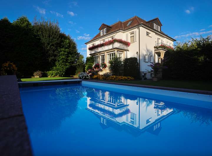 Diese beeindruckende Stadtvilla vereint klassisches Design mit modernem Luxus. Auf einem ebenerdigen Grundstück von circa 4154 m² bietet es großzügiges Wohnen in lichtdurchfluteten Räumen, eine private Wellnesszone mit Sauna, Büro und Weinkeller einem perfekten Outdoorbereich.