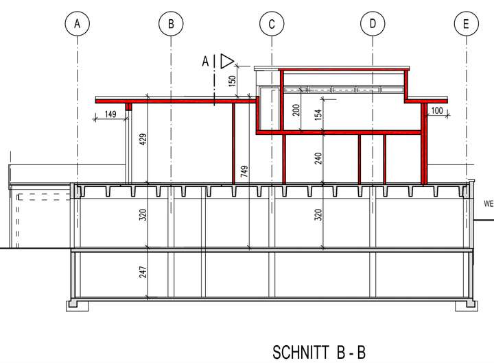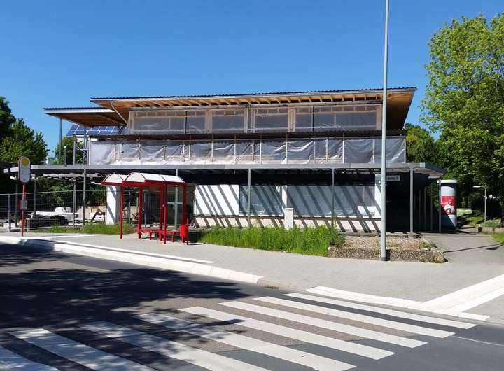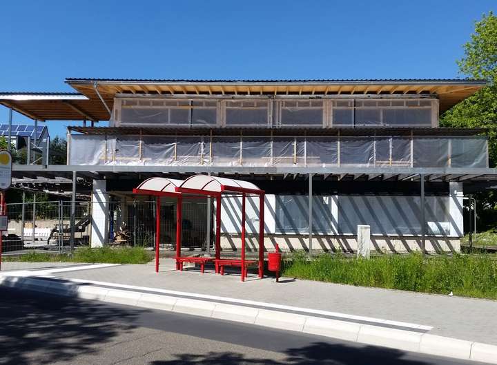 Das Gebäude besteht teils aus einem Bestandsbau aus den 1970er-Jahren und teils aus einem Neubauanteil aus 2023/2024.