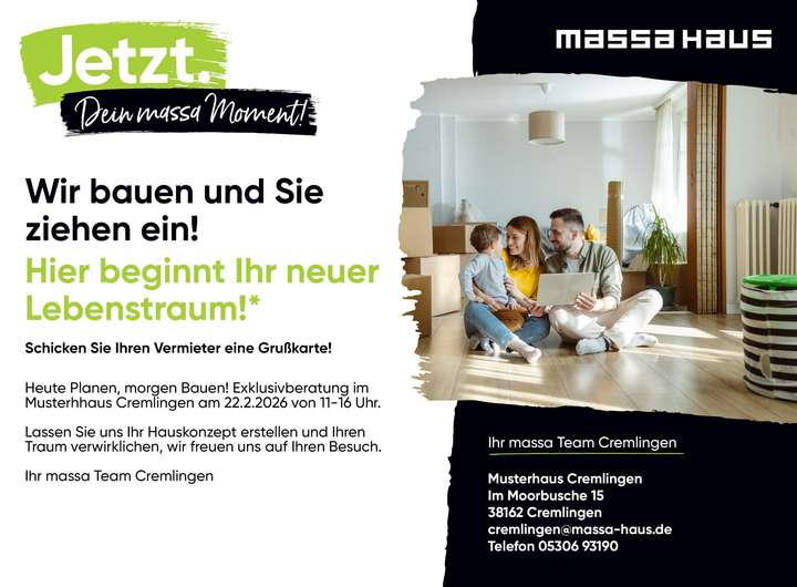 Fordern Sie jetzt weitere Informationen an, vereinbaren Sie einen Besichtigungstermin in unserem Musterhaus und überzeugen Sie sich zum Beispiel auch von unserem familienfreundlichen Finanzierungsservice (auch ohne Eigenkapital möglich)