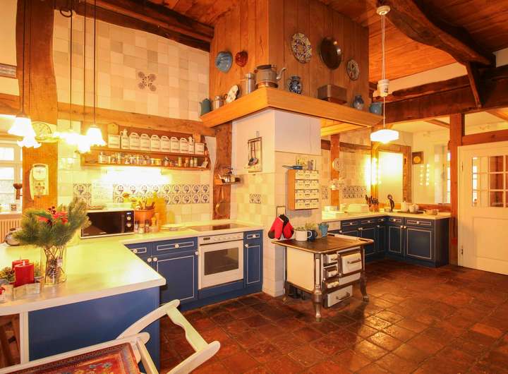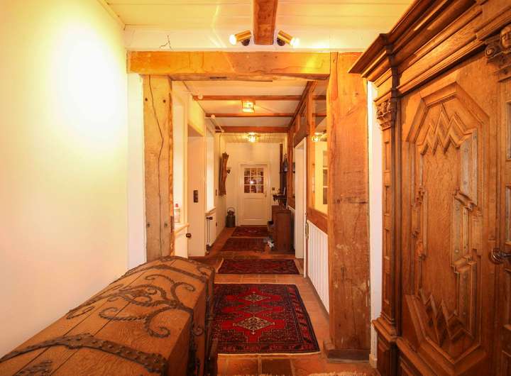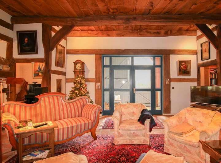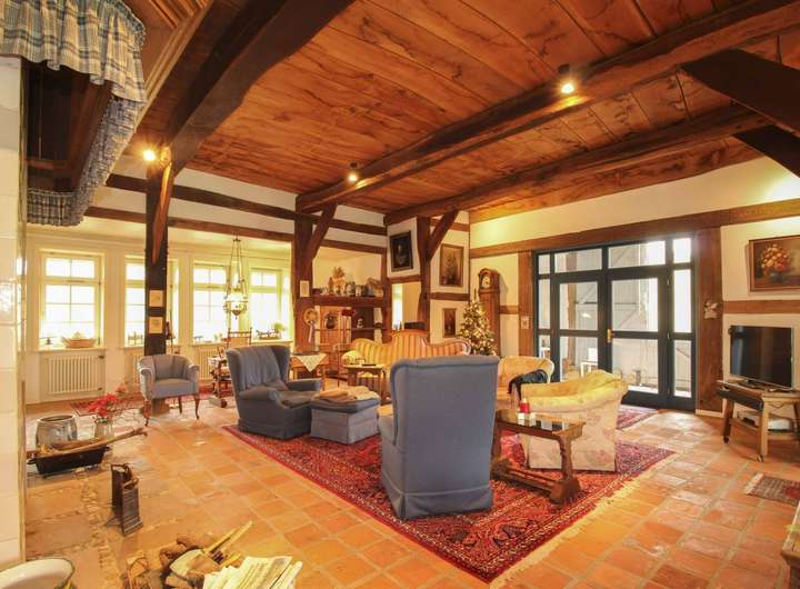 Objektnr: 1065453 Ihre Suche nach dem optimalen Zuhause findet hier ein Ende. Das ursprünglich 1651 erbaute und denkmalgeschützte Haus wurde in den 80 er Jahren komplett überarbeitet und neu hergerichtet. Das charmante Landhaus charakterisiert sich durch einen gepflegten Zustand und dem parkähnlichen Garten. 1951 erfolgte bereits der Anbau, in dem Büro- und Wohnräume vorhanden sind. Auf dem Grundstück befinden sich noch 5 weitere Gebäude mit verschiedenen Nutzungsmöglichkeiten. Ein Gebäude dient z. B. als Doppelgarage und 2 andere Gebäude können noch zu Wohnraum umgebaut werden. Die ca. 462,46 m² Wohnfläche sind mit 16 Zimmern und 7 Schlafzimmern auf das Haupthaus und dem Anbau verteilt. 4 Badezimmer mit Dusche und Badewanne sowie ein Gäste-WC gehören ebenfalls zum Grundriss der Immobilie. Viele Köpfe, viele Hobbys, viele Ideen: Dank der großen Raumvielfalt können Sie das Zuhause nutzen, wie es Ihnen gefällt. Zu verzeichnen hat das attraktive Angebot zahlreiche Highlights: So wartet es bspw. mit einem Kaminzimmer und der angrenzenden Küche auf, die den Lebensmittelpunkt des Anwesens bilden. Dank des ca. 4.535 m² großen Grundstücks gehört zu Ihrem Alltag künftig viel Zeit unter freiem Himmel. Ein besonderes Highlight ist der Garten mit Terrasse: Ein wahres Paradies, das sich durch seine außerordentlich großzügige Fläche auszeichnet. Das Grundstück ist größtenteils sichtgeschützt, wozu die bis zu 100 Jahre alten Eichen ihren Teil beitragen. Aufgrund von Denkmalschutz ist kein Energieausweis erforderlich.