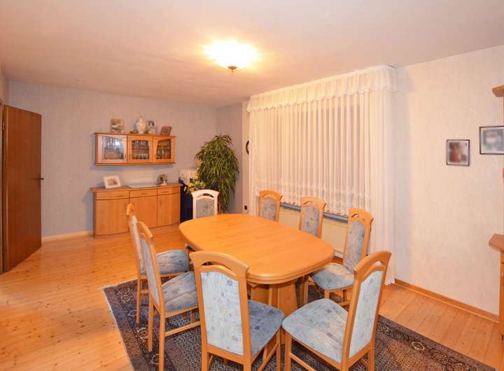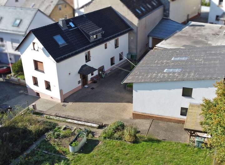 Das Haus wurde ca. 1950 (mit Anbau aus ca. 1975) in massiver Bauweise errichtet. Zum Teil sind vorhandene, solide Grundmauern genutzt worden. Das Haus hat zwei Vollgeschosse, ist fast komplett unterkellert und hat einen großen und zum Teil bereits ausgebauten Dachboden. Bis unters Dach gibt es eine solide Treppe. Die ca. 160m² Wohnfläche (ohne Dachgeschoss) mit zwei Bädern und Küchen ermöglichen auch die Nutzung als Zweifamilienhaus. Das Haus wurde mit einem Fassaden- WDVS mit 8-10cm Dämmstärke ausgestattet. Auch die Dacheindeckung wurde erneuert und ebenfalls nach modernen Standards gedämmt und der Ausbau vorbereitet. Die Ölheizung ist betriebsbereit. Das Objekt verfügt über Sat-TV und DSL, Glasfaser wird gerade im Ort verlegt. Neben einer Doppelgarage und einem großen Hof gibt es noch ein weiteres Nebengebäude, teils Scheune, teils Werkstatt. Sogar mit Heizung und Wasseranschluss. Der Gartenbereich ist herrlich sonnig, hat einen Nutzgarten und eine große Wiese. Ein überdachter Freisitz ist auch vorhanden. Das Objekt befindet sich in gepflegtem Zustand. Hier und da sind kleinere Reparaturen (z. B. Erneuerung der Rolladengurte) erforderlich und es gibt eine leicht feuchte Stelle im hinteren Bereich des EG, die angegangen werden sollte. Das Haus ist aktuell noch vom Eigentümer bewohnt und kann ab 01.03.26 übergeben werden. Wir freuen uns auf eine Besichtigung mit Ihnen!
