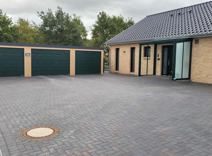 • 2 Garagen mit Überbreite (ca. 3,5 m), angrenzender Abstellraum, (ca. 3 m) mit drei getrennten Funk-Sektionaltoren von Hörmann