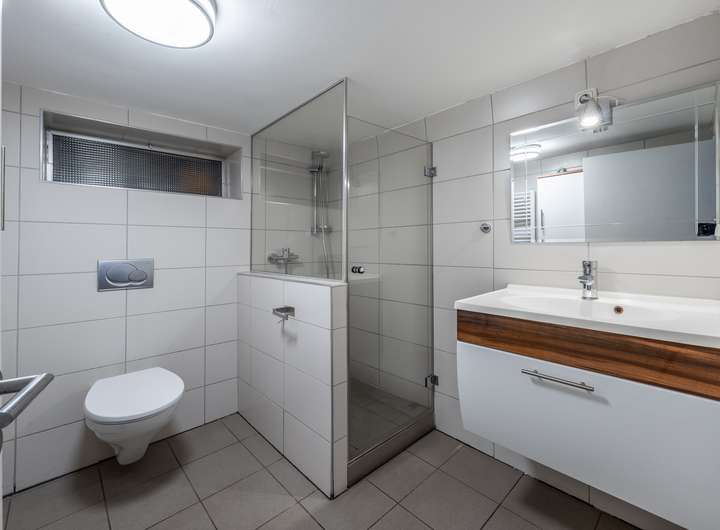 - Hochwertige Materialien wie Fliesen und Echtholz im Objekt