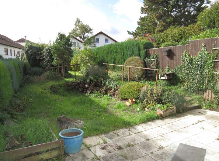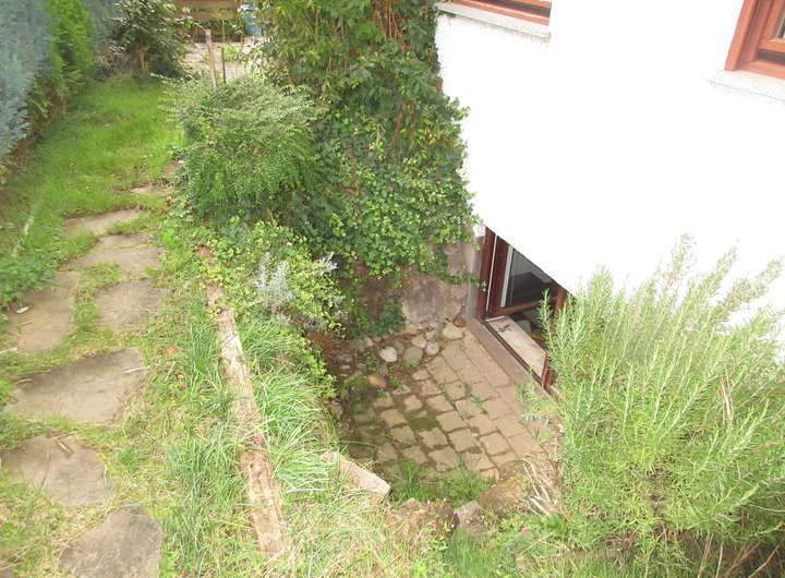 Wie üblich, gelangt man vom Wohnzimmer auf die Terrasse, die wie auch das Grundstück selbst, perfekt nach Südwesten ausgerichtet ist. Garten und Terrasse fangen somit vom Vormittag bis abends die Sonne ein.