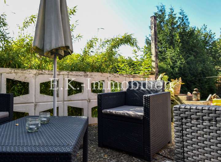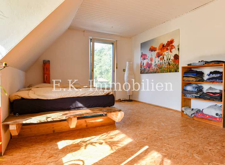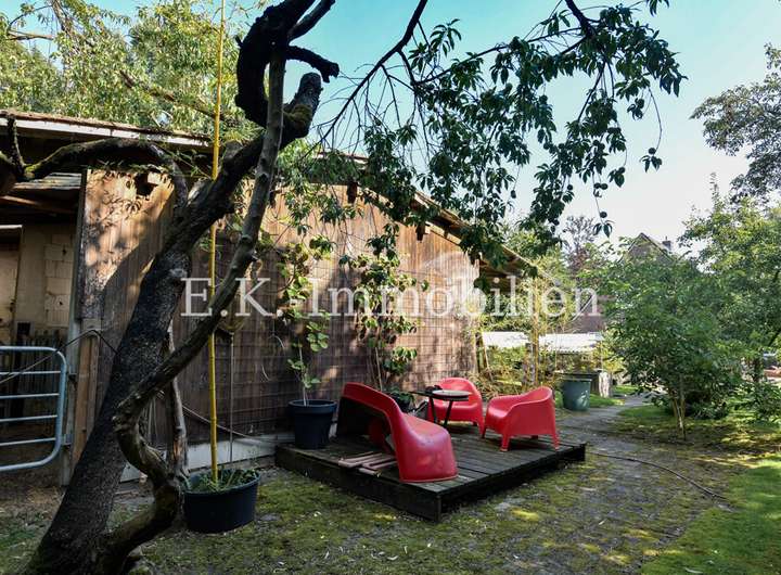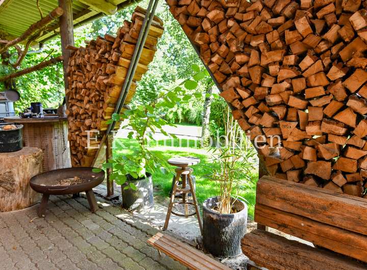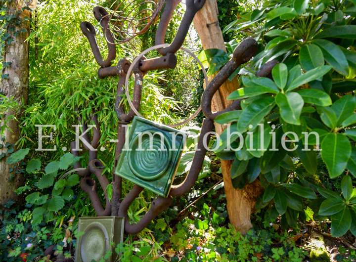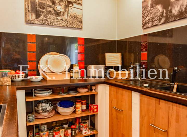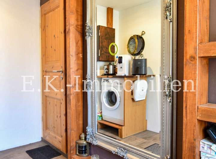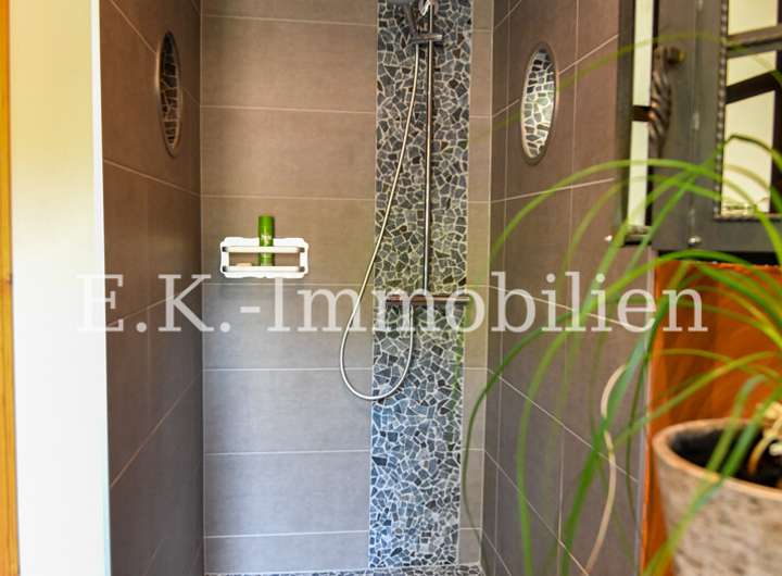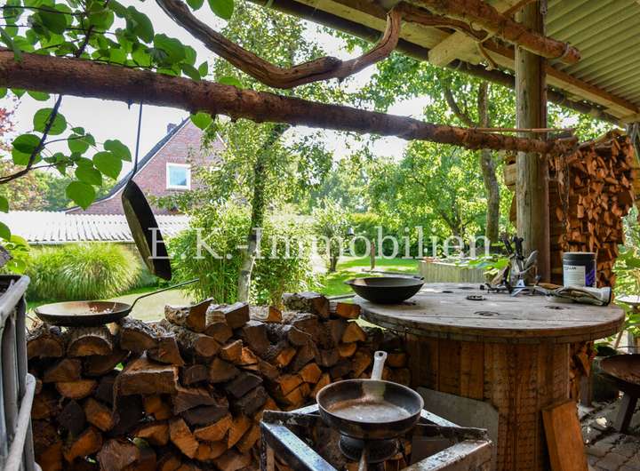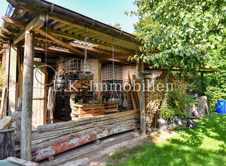 Auch draußen zeigt sich die Individualität des Anwesens: Mehrere kleine, alternativ gestaltete Terrassenbereiche laden zum Verweilen und Genießen der Natur ein. Hier können Sie Ihren persönlichen Rückzugsort schaffen, Freunde empfangen oder einfach die Ruhe der Umgebung auf sich wirken lassen.