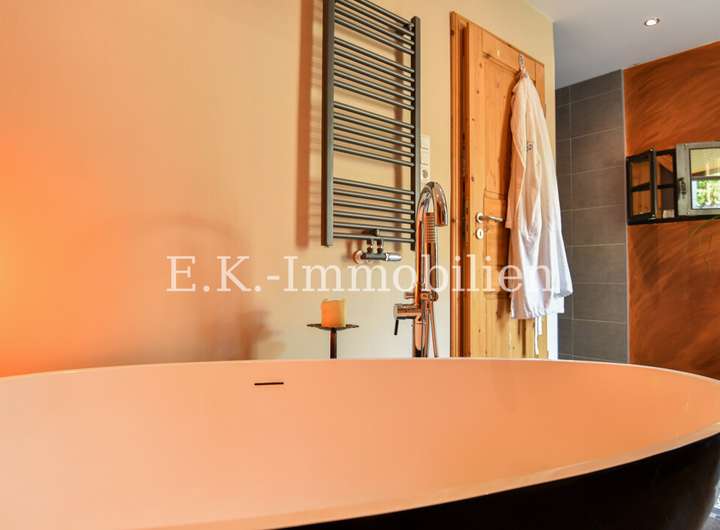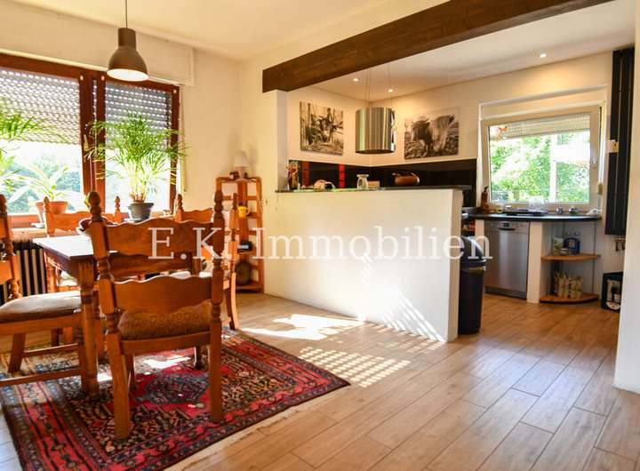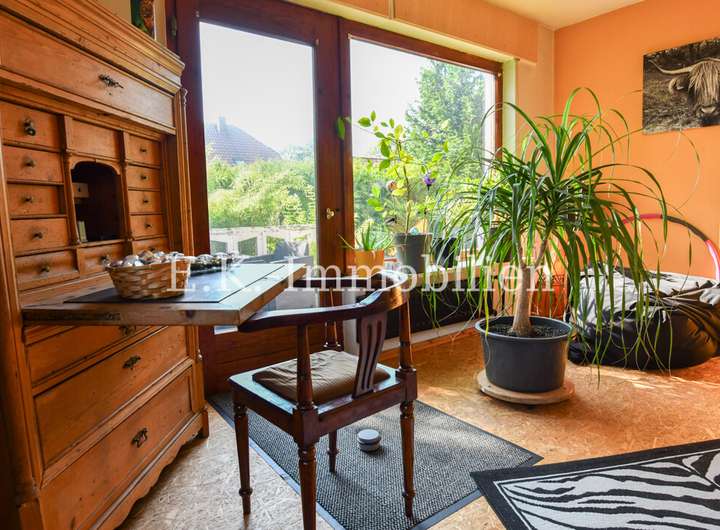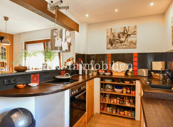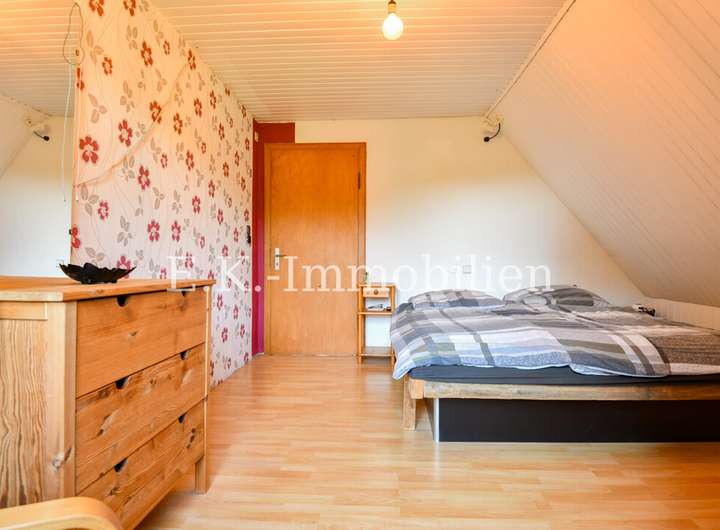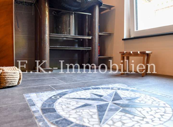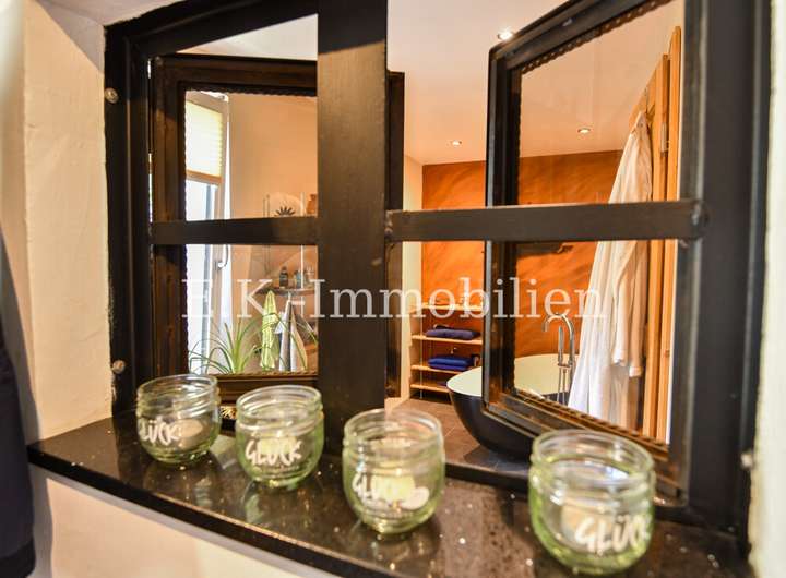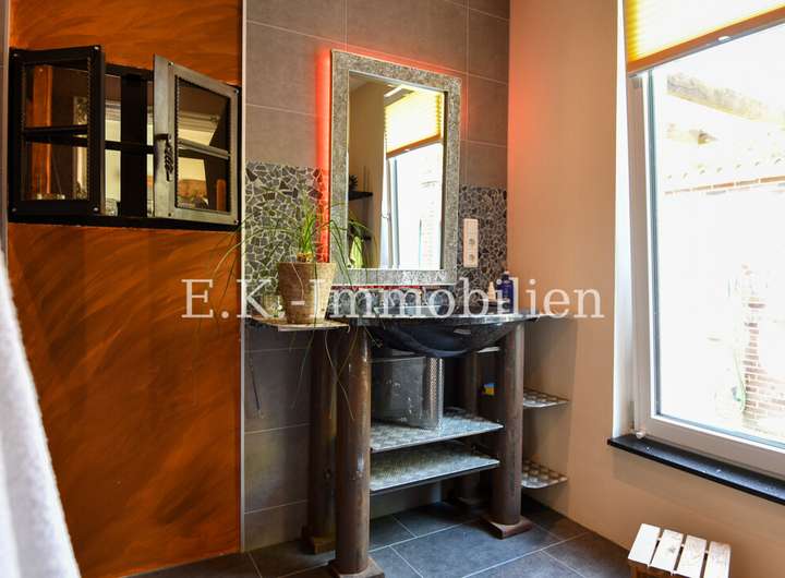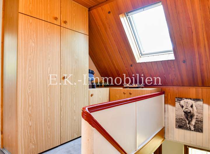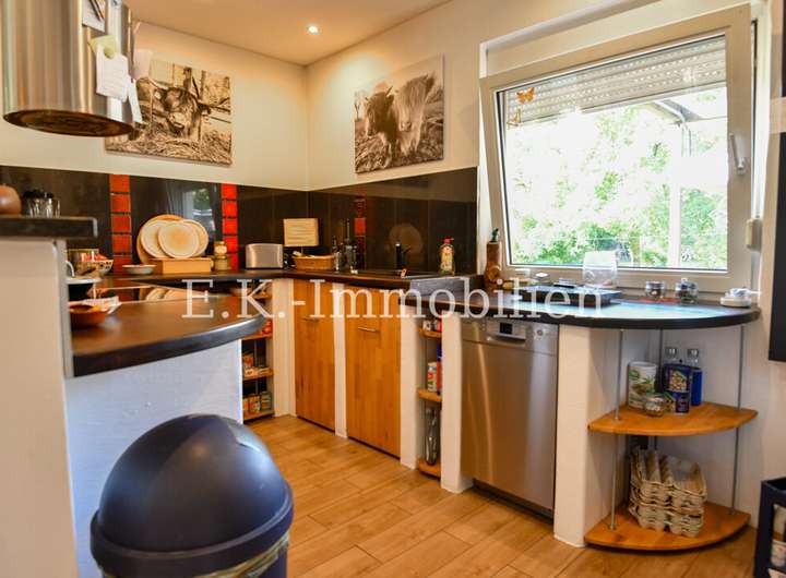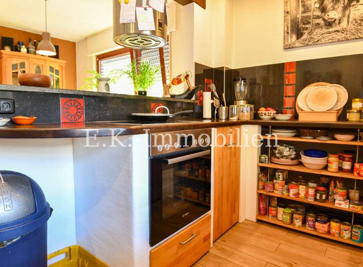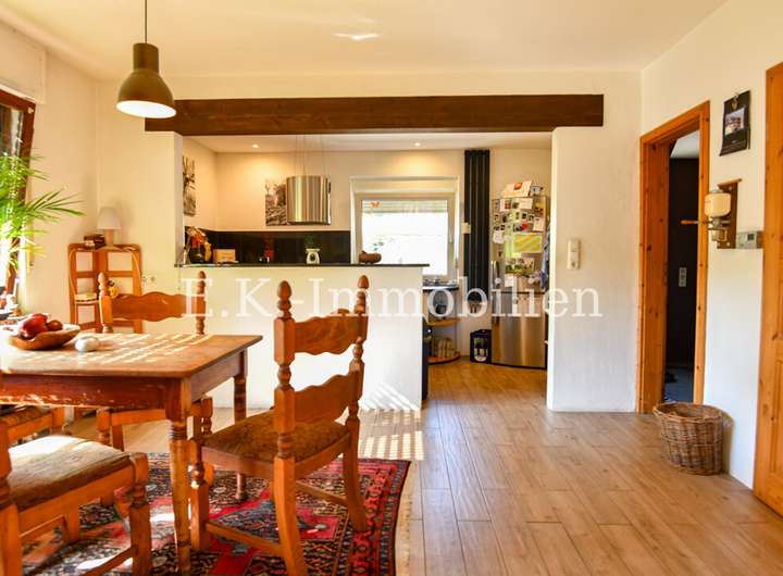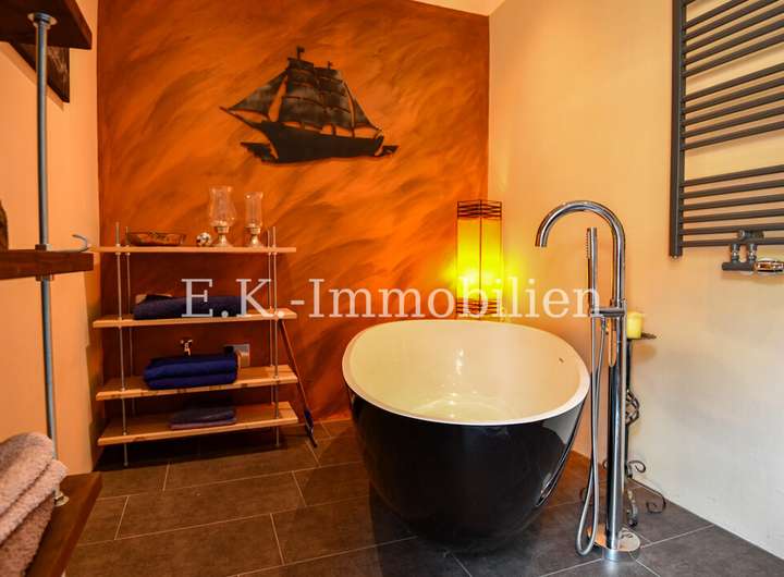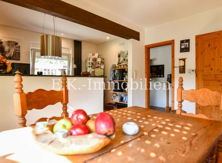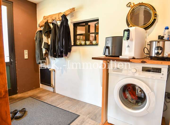 Das Haus selbst bietet viele liebevoll gestaltete Details, die es einzigartig machen. Ein Highlight ist das Badezimmer mit Bullauge, Steh-Wanne, Dusche. Die offene Eigenbauküche fügt sich harmonisch in den hellen Essbereich ein, der durch seine freundliche Atmosphäre sofort zum Mittelpunkt des Familienlebens wird. Angrenzend lädt das gemütliche Wohnzimmer mit einem abgetrennten Fernsehraum zu entspannten Stunden ein. Im Obergeschoss erwarten Sie drei Schlafzimmer, ein Badezimmer sowie ein heller Flurbereich, der das angenehme Wohngefühl fortführt.