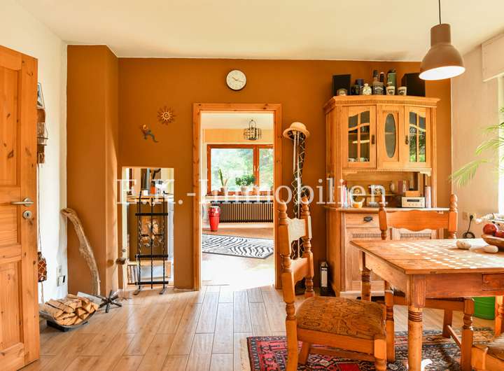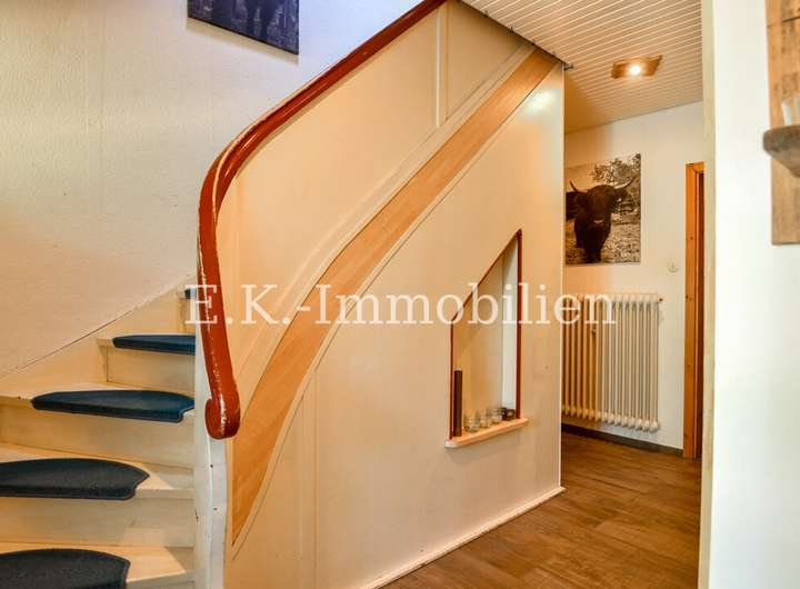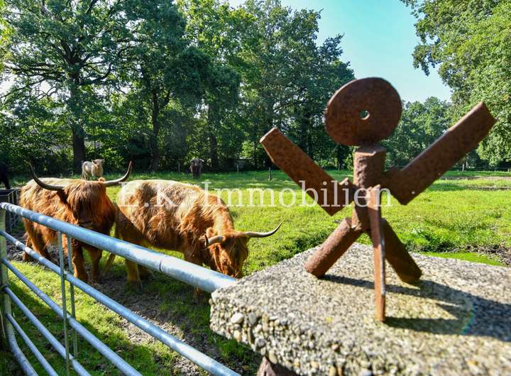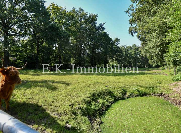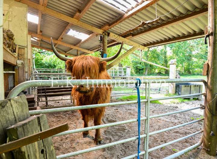 Dieses charmante Einfamilienhaus aus dem Jahr 1968 überzeugt durch seine massive Bauweise, eine solide Substanz und jede Menge Individualität. Auf einem beeindruckenden Grundstück von rund 17.512 m² erwartet Sie eine besondere Kombination aus ländlicher Idylle und kreativen Gestaltungsmöglichkeiten. Zurzeit leben Highland-Rinder auf dem Hof – ein klares Zeichen, dass Tiere hier ausdrücklich erwünscht sind und genügend Platz für Haltung, Naturerlebnisse und eigene Ideen vorhanden ist.