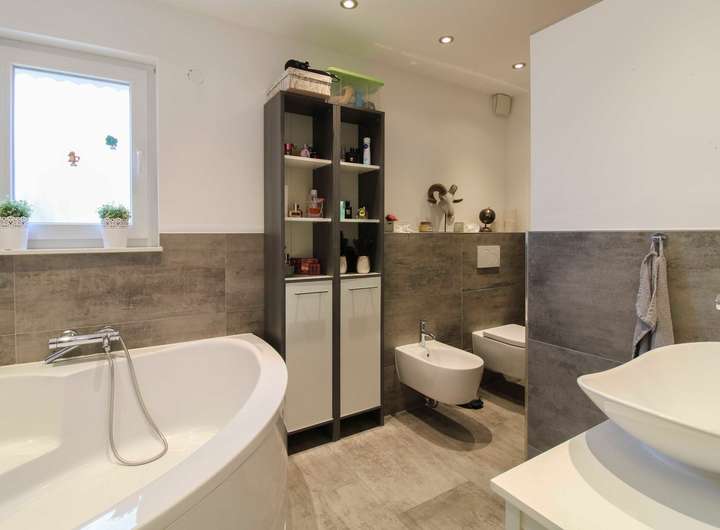 Mit 5 optimal aufgeteilten Zimmern, darunter 4 geräumige Schlafzimmer, bietet das Haus auf ca. 163 m² Wohnfläche ausreichend Platz für die ganze Familie. Der offene Wohn- und Essbereich schafft eine helle und freundliche Atmosphäre, die zum gemeinsamen Verweilen einlädt. Ergänzt wird das Raumangebot durch ein Tageslichtbadezimmer mit Dusche & Badewanne im Erdgeschoss sowie ein zusätzliches WC im Obergeschoss – perfekt für den Familienalltag.