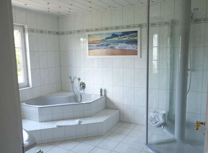 Das Haus verfügt außerdem über großzügige Balkone, drei Badezimmer sowie ein zusätzliches Gäste-WC. Ein großer Hobbyraum bietet vielseitige Nutzungsmöglichkeiten. Der gepflegte Garten lädt zum Entspannen ein und rundet das attraktive Gesamtbild ab.