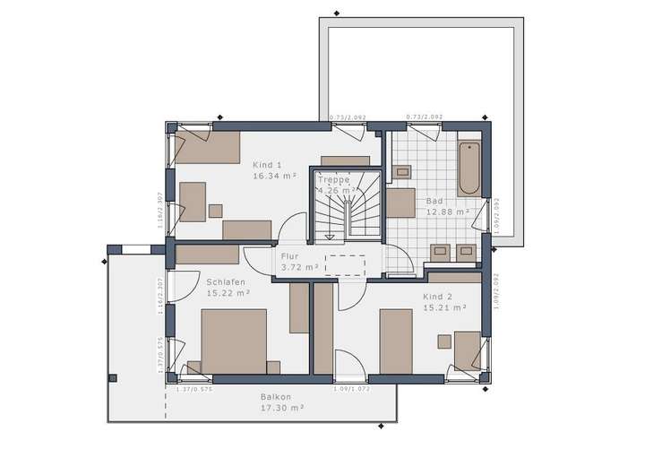 Anbauteile, Carport, Garage und Keller können Extras sein, die als Sonderausstattung angeboten werden. Abbildungen, Grundrisse und Flächenangaben sind beispielhaft und können Extras zeigen. Flächenangaben nach DIN 277.