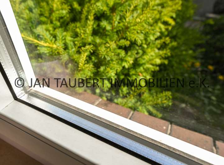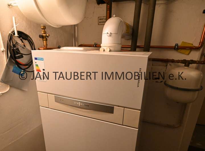 massive Bauweise, schöne Backsteinfassade, Dach als Krüppelwalmdach, vollunterkellert, Fenster Kunststoff weiß/doppelverglast, überwiegend Außenrollläden, 5 Zimmer, Bad und Gäste-WC, Küche mit älterer Einbauzeile, Holztreppen ins KG/DG, Gas-Zentralheizung, Hauseingang mit Vordach