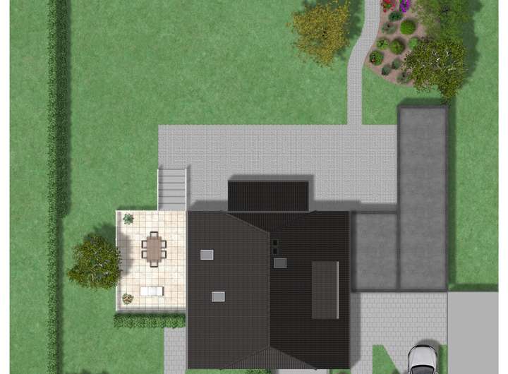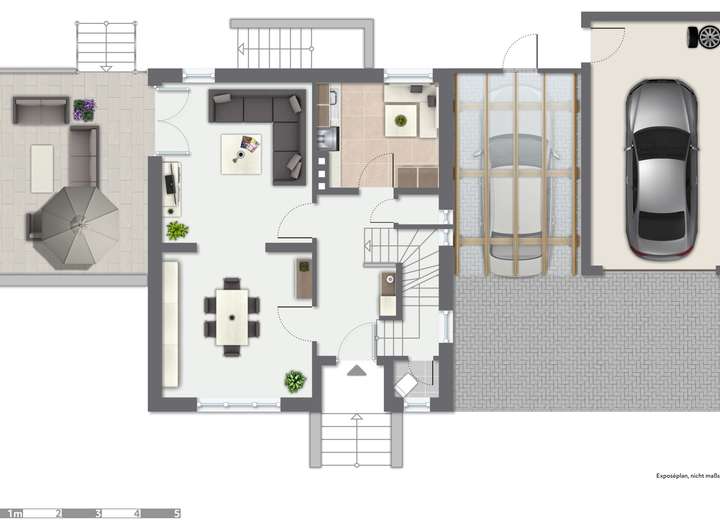 Garage mit elektrischem Rolltor (1 Stellplatz) + Carport (1 Stellplatz) mit Durchgang zum rückwärtigen Garten