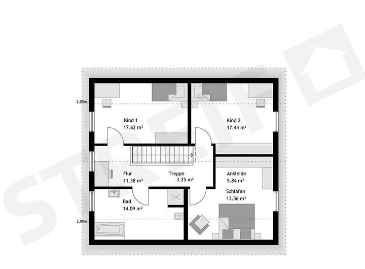 Im Erdgeschoss sind der große Wohn-/Ess-/ Kochbereich, ein Zusatzzimmer und ein optionales Duschbad die Highlights. Im Dachgeschoss gibt es zwei sehr große Kinderzimmer, einen Elternbereich mit Ankleide und ein herrliches Familienbad.