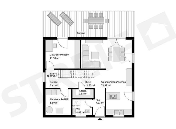 Ihr STREIF Haus wird im KfW-Standard ausgeführt. KfW-Effizienzhaus inkl. Haustechnik aus dem STREIF-Programm in der Ausbaustufe FF+ (Fast-Fertig+) exklusive einer Fundamentplatte.