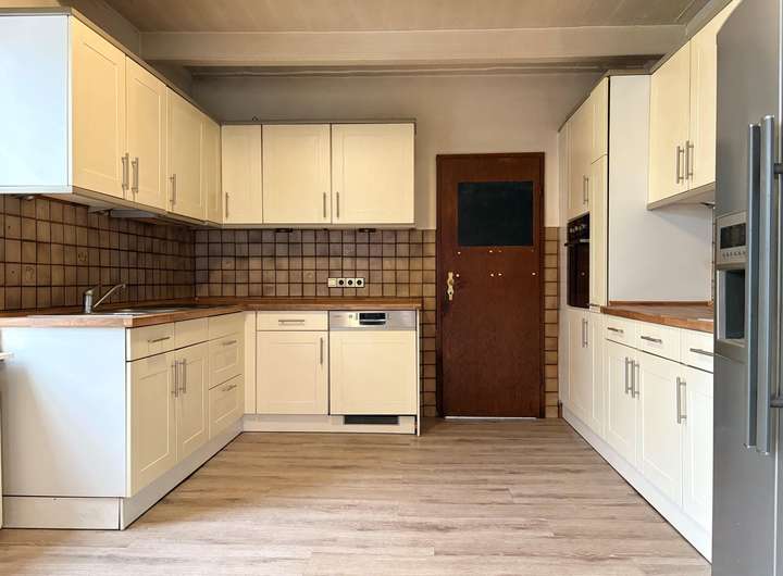 - Erdgeschoss: 3 Zimmer, Küche mit Einbauküche, Bad, Gäste-WC, zwei Flure, Abstellraum, Heizungsraum