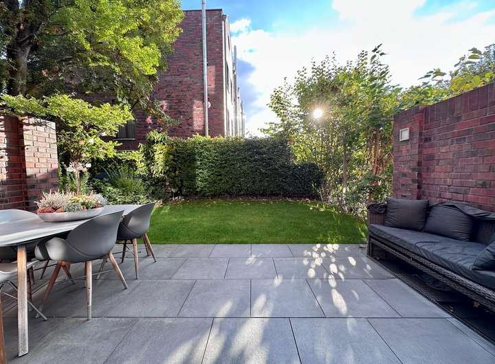 Der eigene, ruhige Garten mitten in der Stadt stellt eine absolute Seltenheit dar, um die Sonne von Sonnenaufgang bis Sonnenuntergang zu genießen.