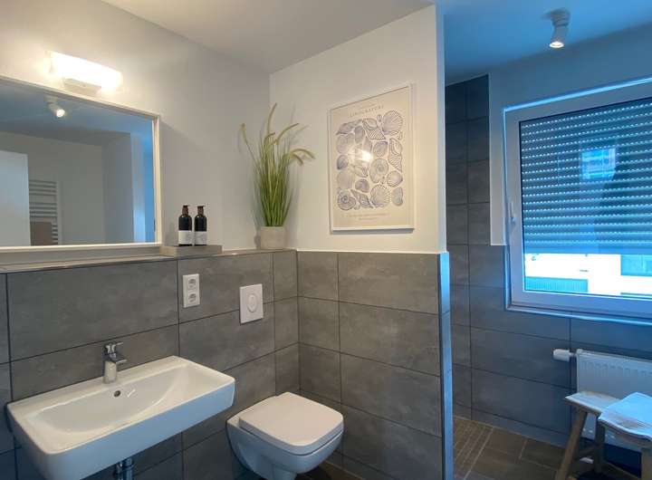 • Das Badezimmer bietet Ihnen mit einer bodentiefen Dusche und einer separaten Badewanne jede Menge Komfort. Für Ihre Waschmaschine wurde im Badezimmer eine Nische eingebaut.