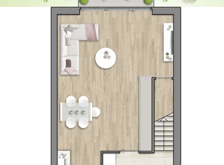 Sie betreten das Erdgeschoss und merken direkt, wie lichtdurchflutet Ihr neues Zuhause ist. Der Wohnbereich mit offener Küche ist großzügig und praktisch geschnitten.
