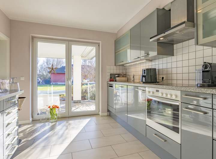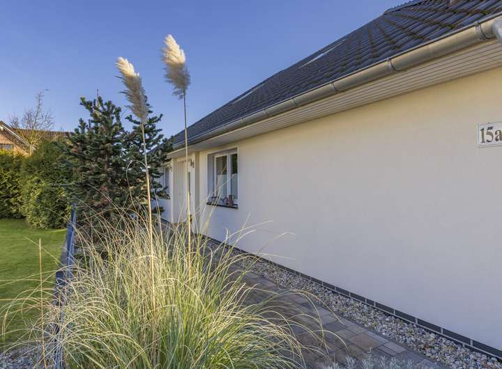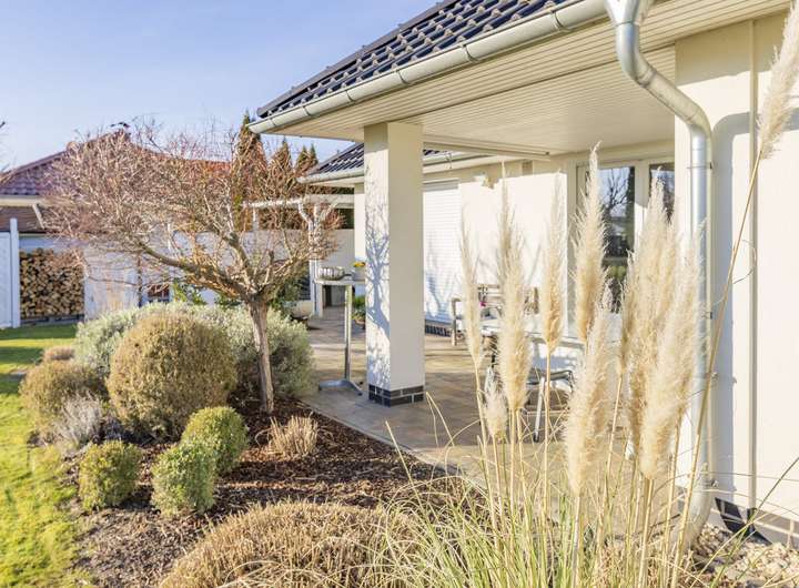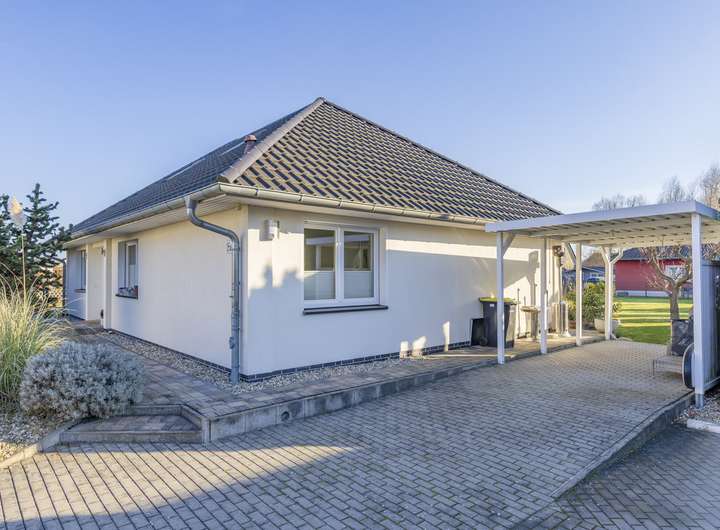 This modern bungalow, which was built in 2010, is located in a quiet yet sought-after area of Werder. With its contemporary architecture and well thought-out floor plan on one level, the house impresses with a successful combination of comfort, functionality and living quality.
