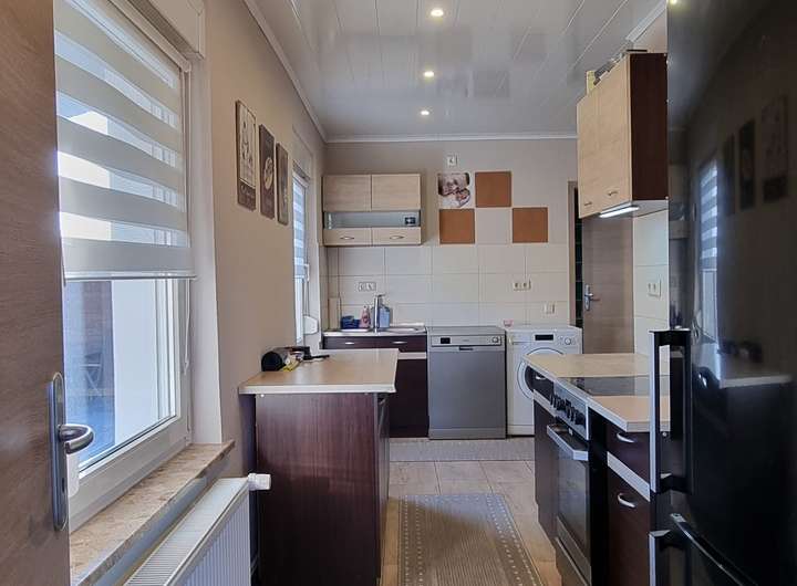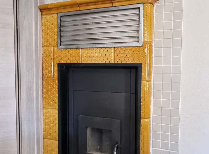 Im Dezember 2023 wurde der tolle Warmluftkachelofen für 3.783 € aufgearbeitet und bekam seinen neuen Ofeneinsatz. Seine Wärme geht über mehrere Räume und hilft Ihnen Energiekosten zu sparen. Die Küche, die beiden dahinter liegenden Räume und sogar das Bad, bekommen etwas von der Wärme ab.