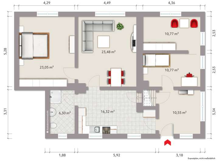 Alle Angaben haben wir vom Auftraggeber erhalten. Für deren Richtigkeit können wir keine Gewähr übernehmen. Einen Zwischenverkauf bzw. eine Zwischenvermietung behält sich der Auftraggeber ausdrücklich vor.