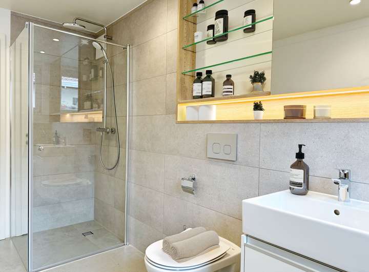 - Bodenebene Dusche mit Echtglasabtrennung