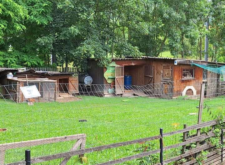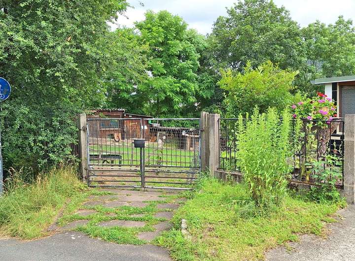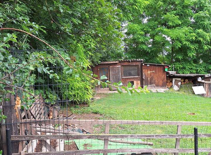 Es ist nach Süden ausgerichtet, die Grundstückgrenze ist gesäumt von einem angenehmen Baumbestand.