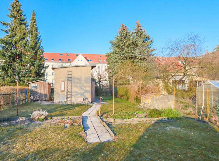 Es handelt sich hierbei um ein schmales aktuell als Gartengrundstück genutztes Bauland mit einem charmante Freizeitbungalow in allgemeinem Wohngebiet (ca. 11,5 m Breite). Die Bebaubarkeit richtet sich nach der Umgebungsbebauung. Diese entspricht einem länglichen Baukörper und ist nach erfolgter Rücksprache mit dem Stadtplanungsamt Leipzig über eine Bauvoranfrage zu klären..