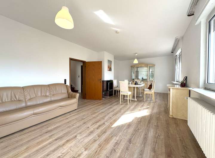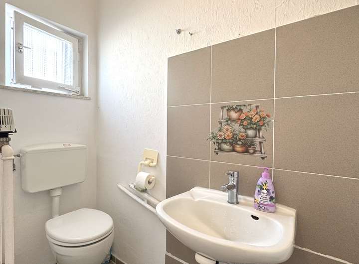 Im Erdgeschoss: separates Gäste-WC mit Dusche sowie ein heller, geräumiger Wohnbereich