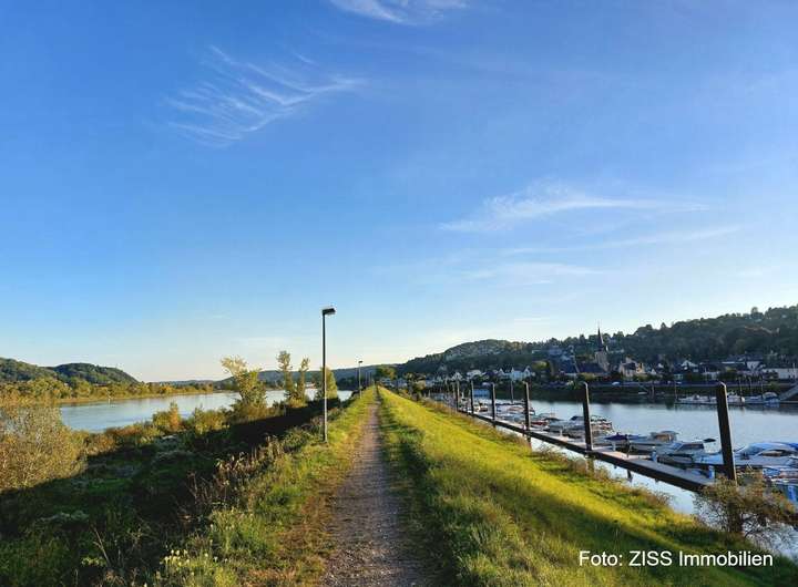 Die Liegenschaft befindet sich in einer reinen Anwohnerstraße (Sackgasse) und bietet durch ihre natürliche Hanglage einen beeindruckenden Ausblick über den Rhein hinweg nach Unkel und Rheinbreitbach – mit malerischen Sichtachsen auf die Erpeler Ley und das Siebengebirge.