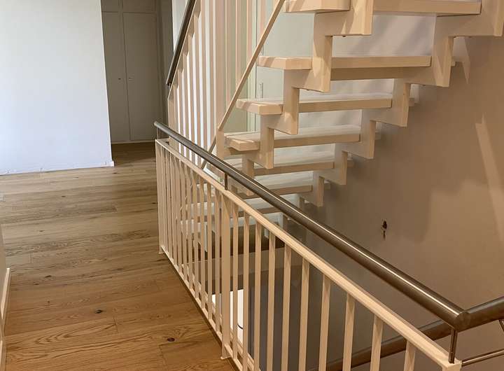 Neue Treppenanlage vom OG zum Spitzboden mit Eingangstürbereich