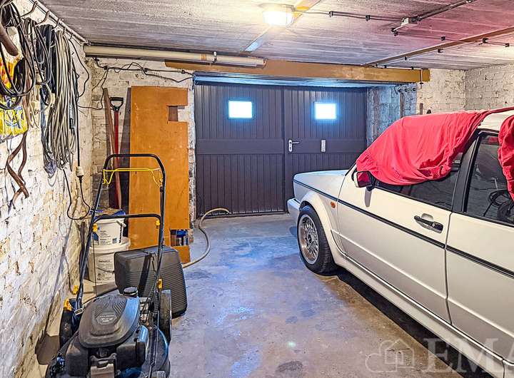 Im Keller befinden sich vier Räume, davon zwei beheizbar, sowie ein Flur. Die Räume werden als Tiefgarage mit Stellplatz für einen Pkw der Golfklasse, als Waschküche mit Stellplätzen für Waschmaschine und Wäschetrockner, für die Hausanschlüsse und Heizungstechnik, als Werkstatt sowie als Abstellfläche genutzt. Die Nutzfläche im Keller beträgt ca. 70 m² und die Raumhöhe ca. 1,85 m.
