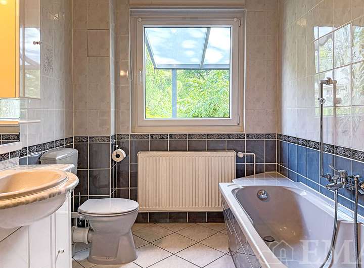 - Badezimmer mit Badewanne und Dusche
