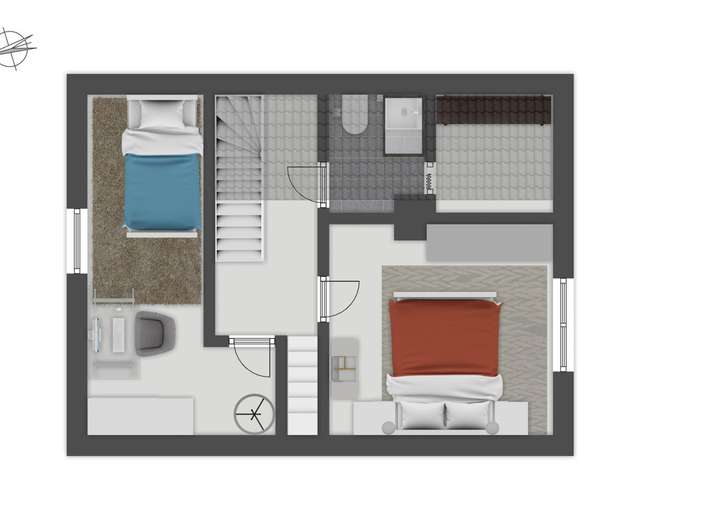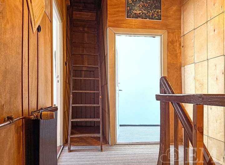 Im Dachgeschoss befinden sich zwei Zimmer, ein WC mit Waschtisch, eine Dachkammer sowie ein Flur. Im Flur führt eine Ausziehleiter in den Spitzboden. Die Wohnfläche im Dachgeschoss beträgt ca. 47 m².