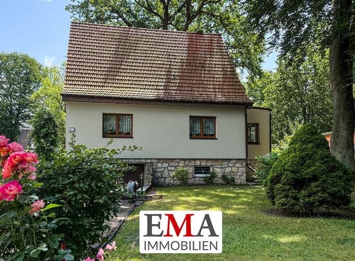 Es handelt sich um ein charmantes Einfamilienhaus auf einem ca. 924 m² großen Gartengrundstück in der beliebten Vogelsiedlung in Schönwalde-Glien im Ortsteil Siedlung.
