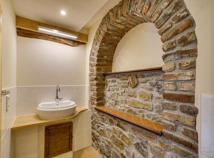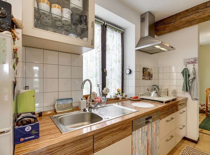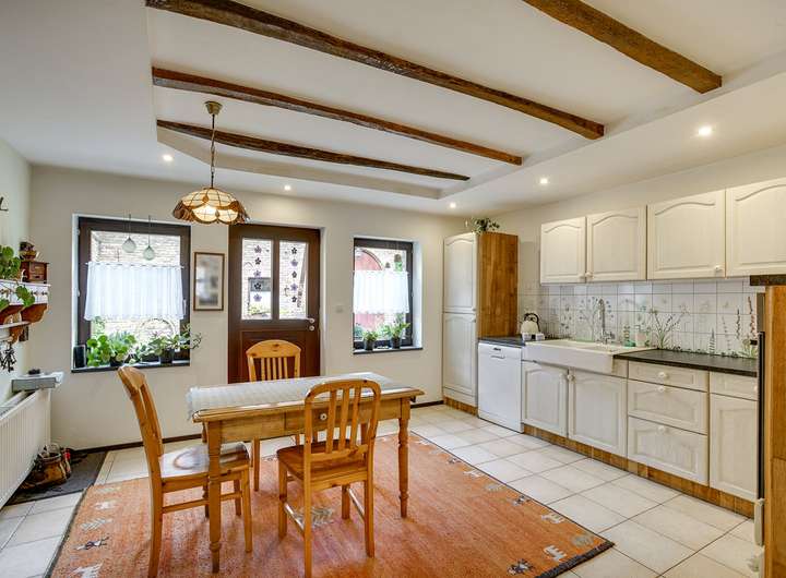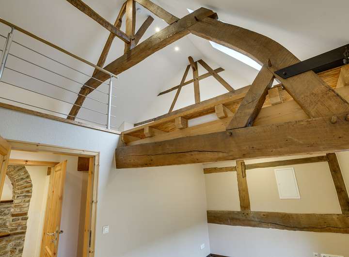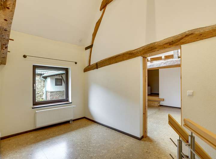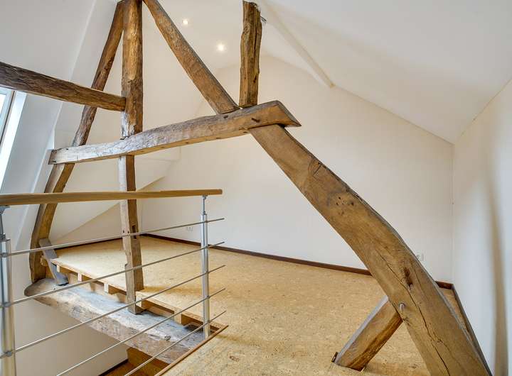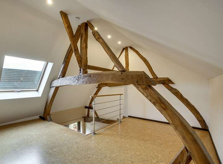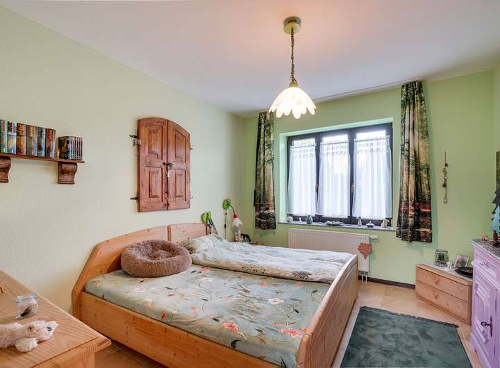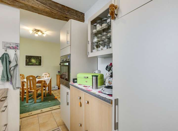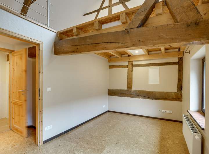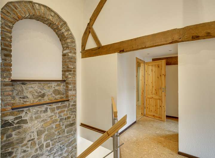 Die Sanierung umfasste nicht nur die Erneuerung von Dachstuhl und Dacheindeckung (Wohnung 2 & 4 inkl. Scheune), sondern auch die komplette Haustechnik mit sämtlichen Leitungen und Rohren. Isolierverglaste Holzrahmenfenster, teils neu oder mit moderner Isolierverglasung ausgestattet, sorgen für ein stimmiges Gesamtbild. Eine Pelletheizung mit separatem Pellet-Bunker sowie zentraler Warmwasseraufbereitung garantiert zeitgemäßen Wohnkomfort.