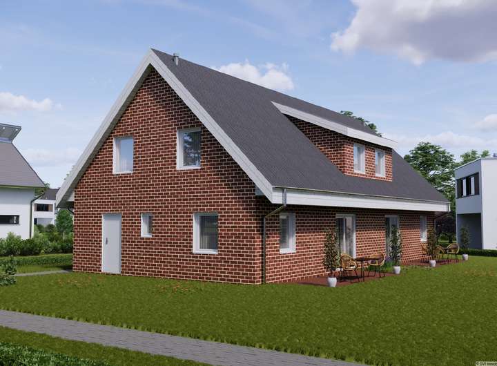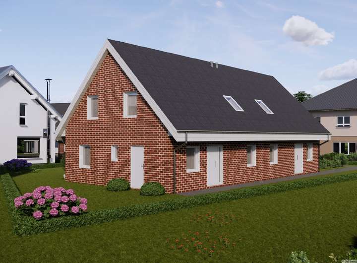 Insgesamt stehen vier Doppelhaushälften in traumhaft ruhiger und sonniger Lage zum Verkauf. Die energieeffizienten Häuser werden voraussichtlich Mitte 2026 fertiggestellt und bieten jeweils eine Wohnfläche von ca. 116 m².
