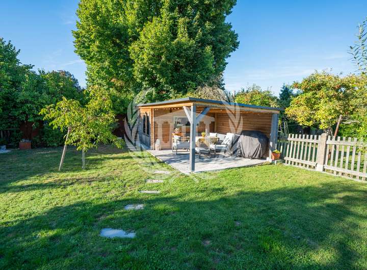 Der Außenbereich ist ebenso beeindruckend wie das Innere: eine großzügig angelegte Gartenlandschaft, eine weitläufige Terrasse, ein Freisitz mit Gartenhaus sowie eine Garage mit zwei elektrischen Sektionaltoren sorgen für Komfort und vielseitige Nutzungsmöglichkeiten. Drei zusätzliche Außenstellplätze komplettieren das Angebot.