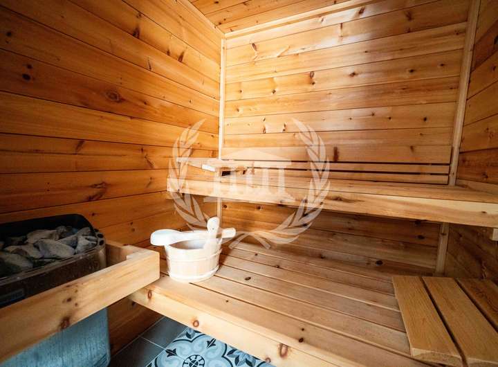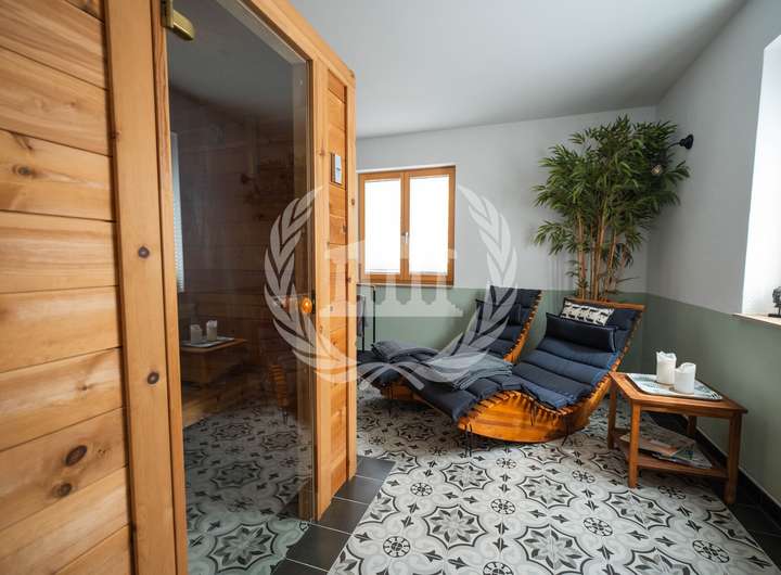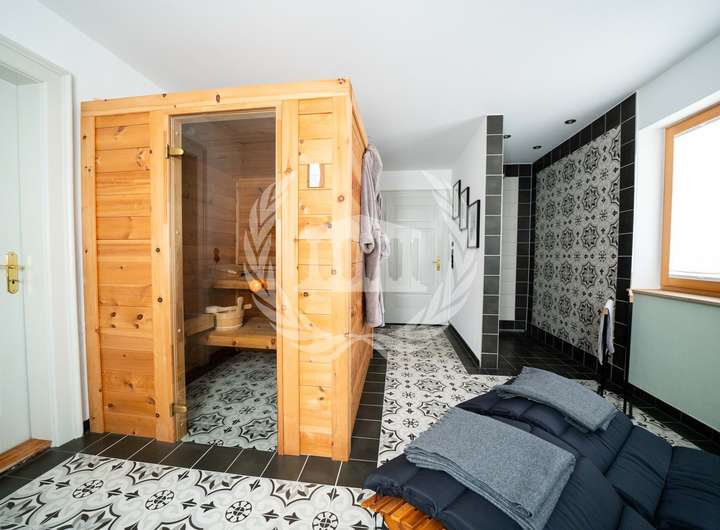 Die hochwertige Einbauküche erfüllt höchste Ansprüche an Design und Funktionalität und ist der ideale Ort für gemeinsame Kochmomente. Für behagliche Wärme und besondere Atmosphäre sorgen gleich zwei Kaminöfen – einer im Anbau und einer im Bestandshaus. Ein weiteres Highlight ist die exklusive Zirbensauna, die Entspannung und Wellness in den eigenen vier Wänden ermöglicht.